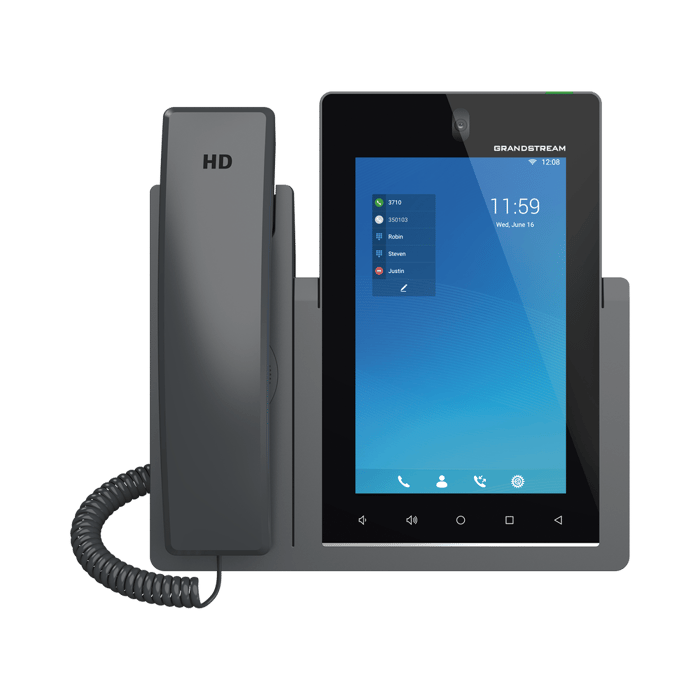 Teléfono IP Android 11, 16 líneas SIP con 16 cuentas, pantalla táctil 7", puertos Gigabit, Wi-Fi, Bluetooth, PoE, codec Opus, IPV4/IPV6 con gestión en la nube GDMS